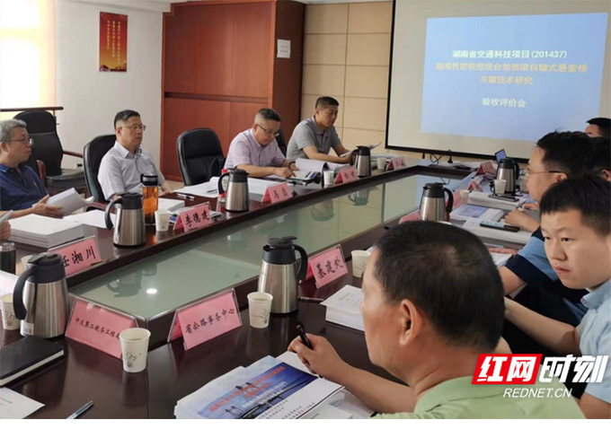 紅網時刻新聞7月26日訊(記者 陳奧男 通訊員 許瑞儀)湖南省交通運輸廳、湖南省公路學會在長沙組織召開會議,對湖南省交通規劃勘察設計院有限公司主持的湖南省交通科技項目“超高性能輕型組合加勁梁自錨式懸索橋關鍵技術研究”進行驗收評價。