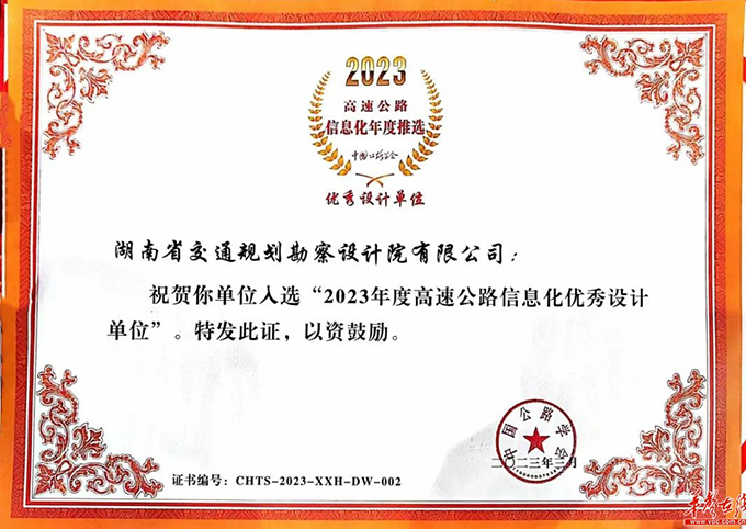 近日,第25屆中國高速公路信息化大會暨技術(shù)產(chǎn)品博覽會落幕,大會設(shè)置的“2023高速公路信息化年度推選活動”是我國交通信息化領(lǐng)域最高榮譽(yù)的獎項評選。湖南國企秀出實力,在最佳產(chǎn)品、優(yōu)秀設(shè)計單位等多類獎項中奪得榮譽(yù)。